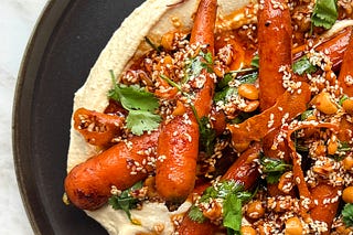 Brothy tempeh rice bowl & whipped tofu with roasted carrots