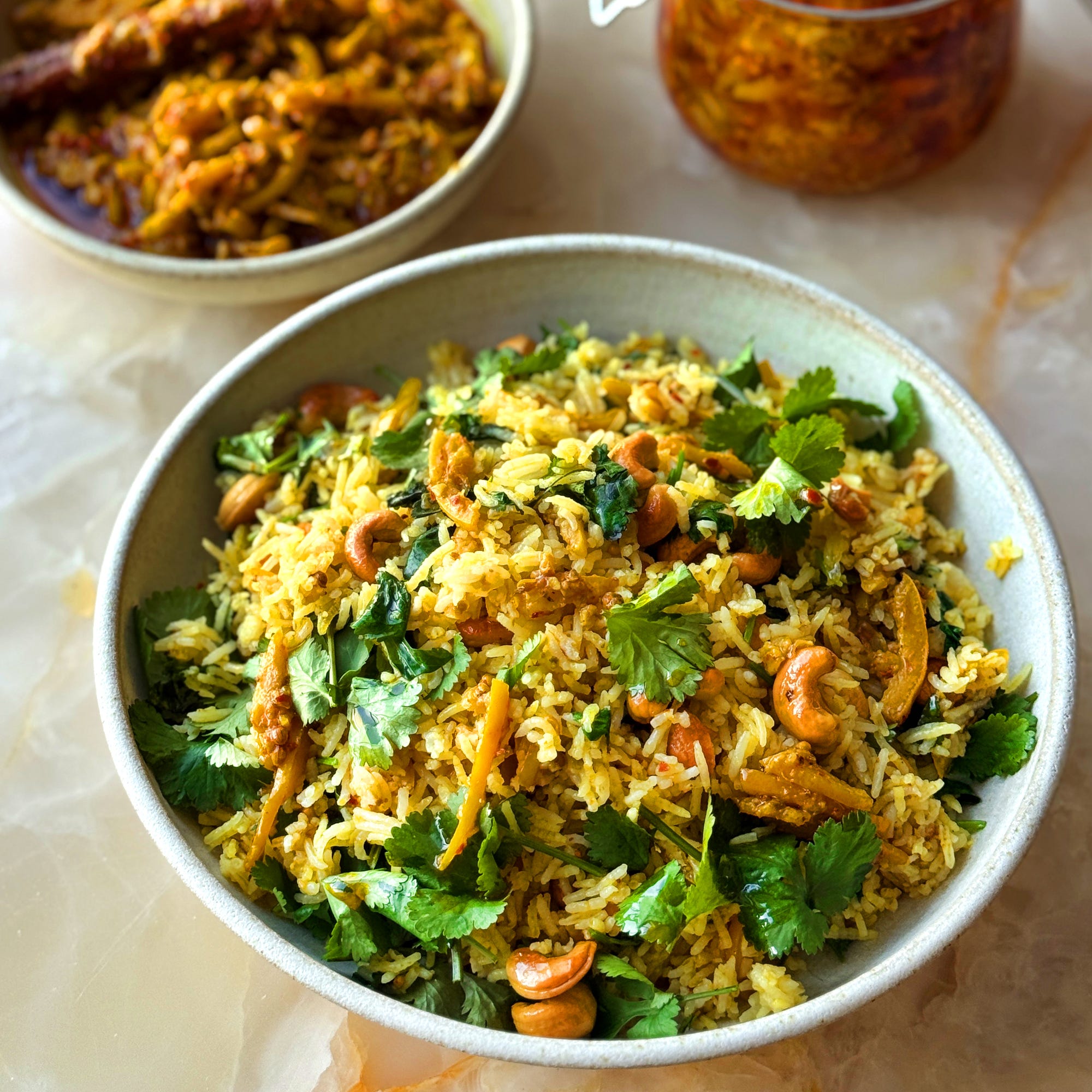 Don’t bin your juiced lemons - you can turn them into an all-round condiment, alongside a couple of fresh lemons. This quick lemon pickle (no need to wait a month for it to mature) is ready to eat in under an hour, keeps for months in the fridge, and can be served in multiple ways: to marinate meat, blitzed into dressings, or diluted with a little water and spooned over roasted vegetables as soon as they come out of the oven. It’s particularly good for the rice with cashews below.
