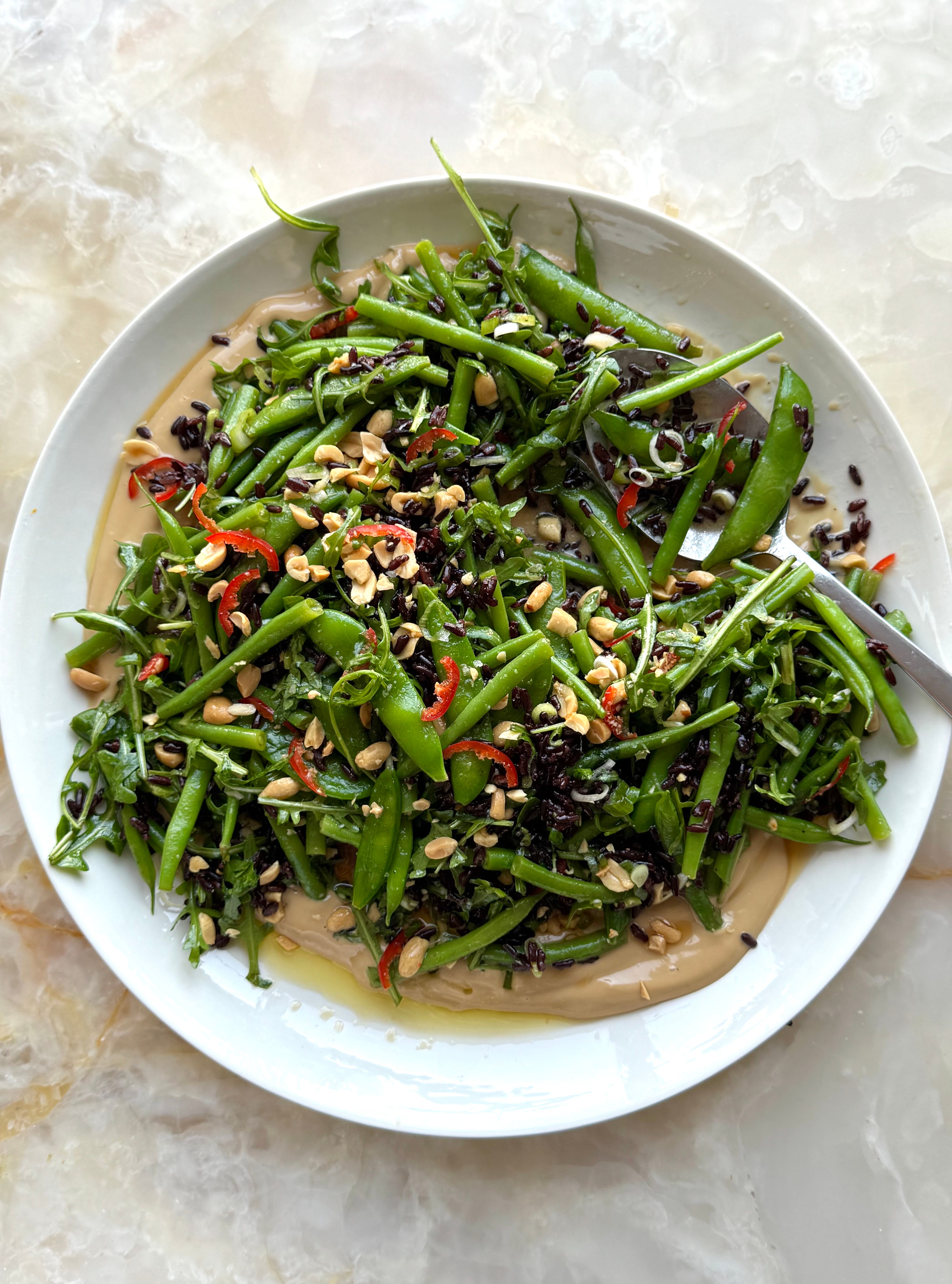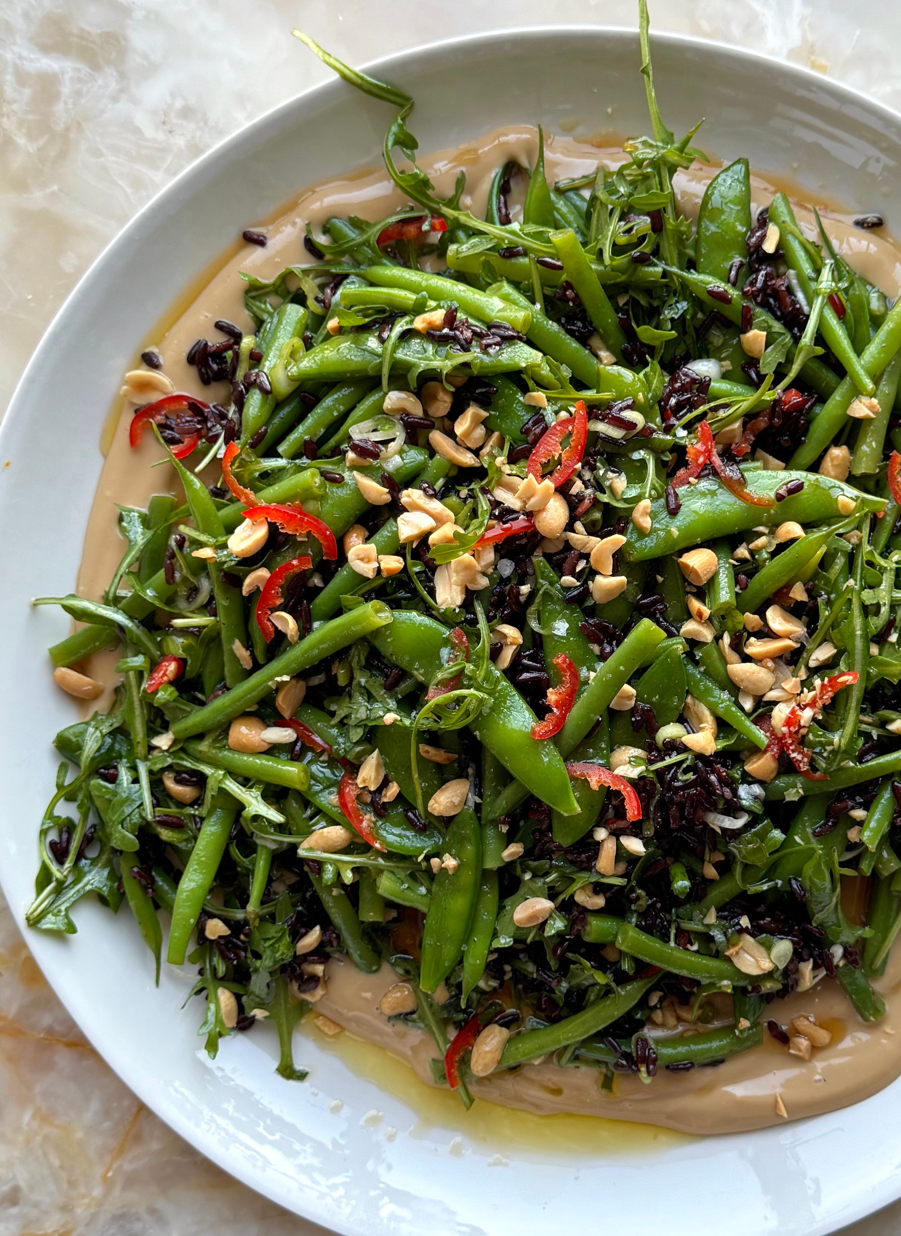 Green bean and black rice salad with goma dare